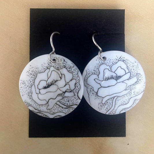 Hand-Drawn Floral Shell Earrings by Terry Favour